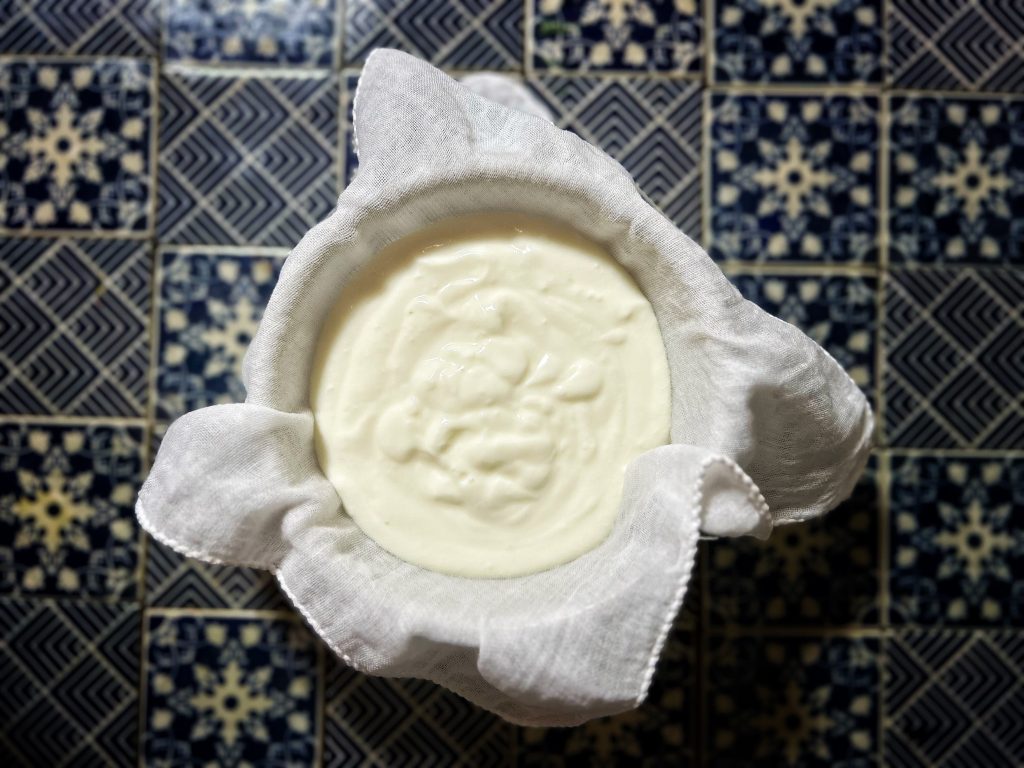 2. 水切り(一晩)※少し緩いですが3~4時間でも大丈夫です。