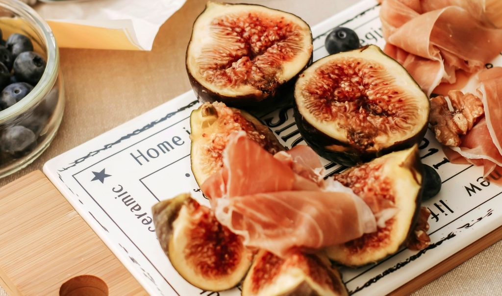 塩を振ることでシャバっとした淡白なスイカの味に、絶妙な甘みが加わり食欲をそそりますよね。だから、日本の果物に比べて糖度が控えめで歯ごたえもあるヨーロッパの果物と、シャルキュトリー(食肉加工品)の本場ならではの塩味と肉感のある生ハムを合わせるとぴったりなのです。